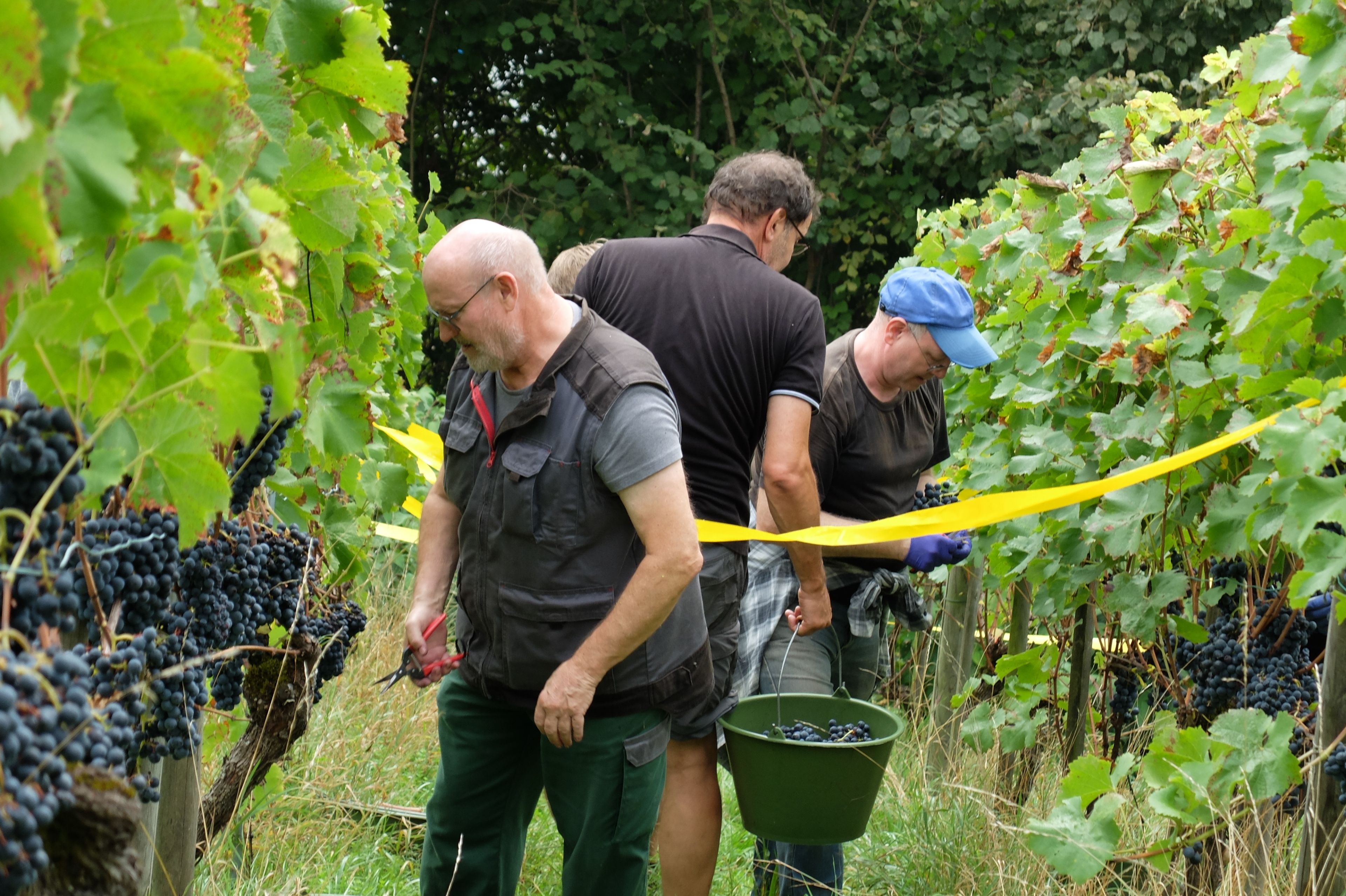 Nach der kurzen Begrüssung unseres Präsidenten Alfred Bachmann übernahm Rebmeister Martin Graf das Zepter im Rebberg und erklärte den Ablauf und auf was man bei der Traubenlese dieses Jahr besonders achten sollte. Mit viel Elan ging es an die Arbeit.