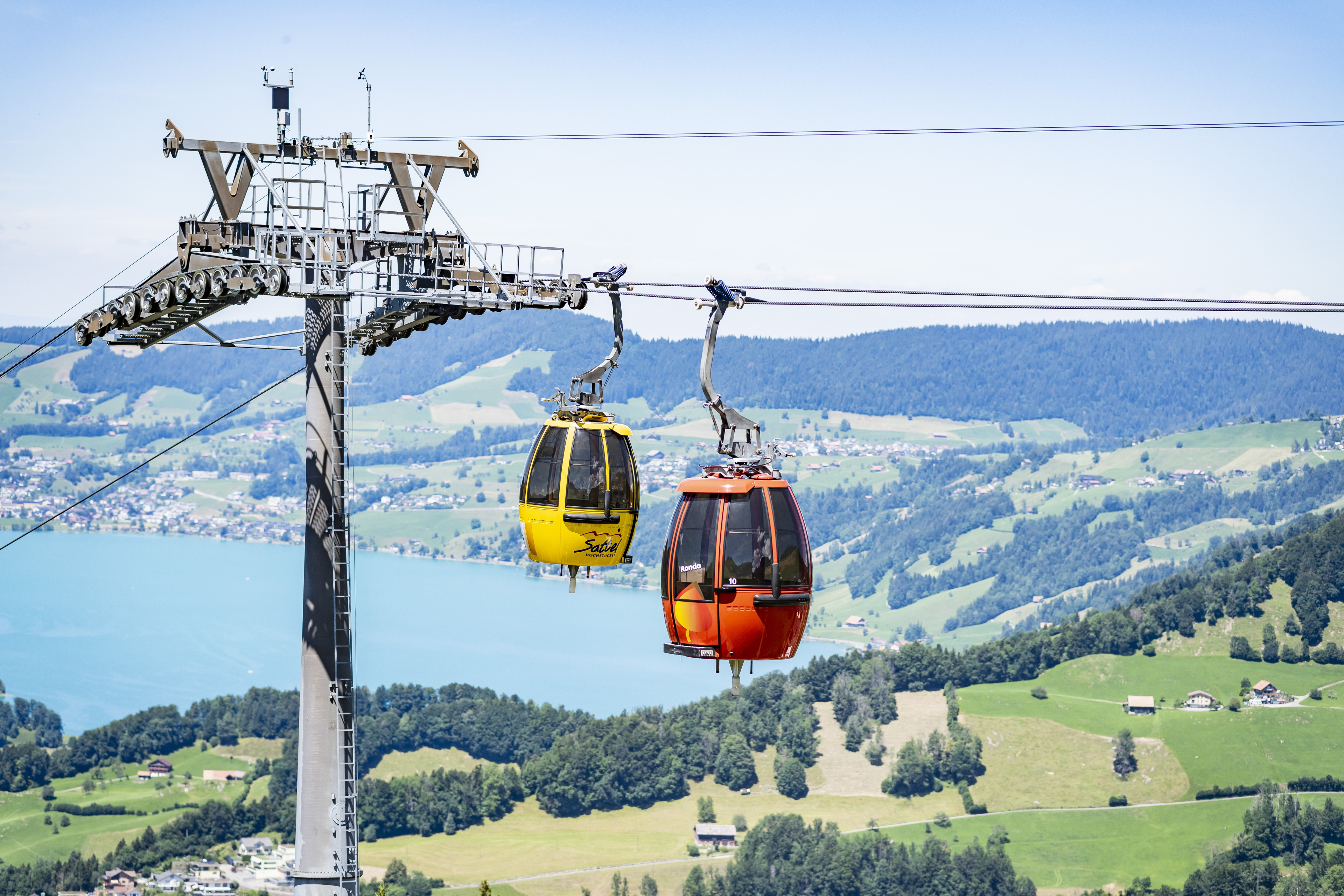 Unsere Carreise führt uns auf einer schönen Route zur Talstation Sattel-Hochstuckli. Die erste Drehgondelbahn der Welt transportiert uns auf den Mostelberg. Von dort lässt sich das herrliche Panorama geniessen! Wer sich traut, kann einen Spaziergang auf die 374 m lange Hängebrücke wagen oder eine Fahrt mit der Rodelbahn unternehmen.