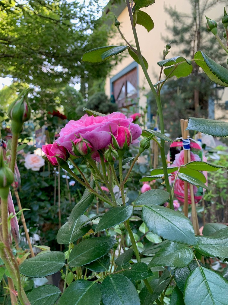 Bei strahlendem Sonnenschein (wenn Engel reisen...) ging es mit einem Kleinbus los. Kurz hinter Thayngen waren wir schon angekommen. Nach dem Betreten des Areals taucht man wie in eine andere Welt ein. Gepflegte verschiedene Gartenbereiche mit diversen Sitzgelegenheiten laden ein zum Staunen und Bewundern. Das imposanteste sind natürlich die verschiedenen Rosen, welche schon voll erblüht waren und noch tausende Knöpfe hatten, die sich nach und nach noch entfalten. Farbe, Formen und Arrangements mit anderen Blumen, Büschen und Bäumen war ein Traum für Auge und Nase. Wir alle waren ob dieser Pracht verzückt und immer wieder hörte man ein "lueged mol do". Im "Lädeli" konnten auch Rosen und andere schöne Sachen eingekauft werden. Gut hatten wir einen Bus für den Transport.