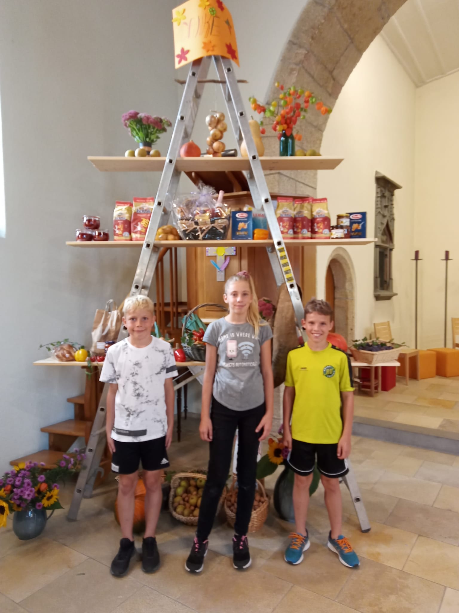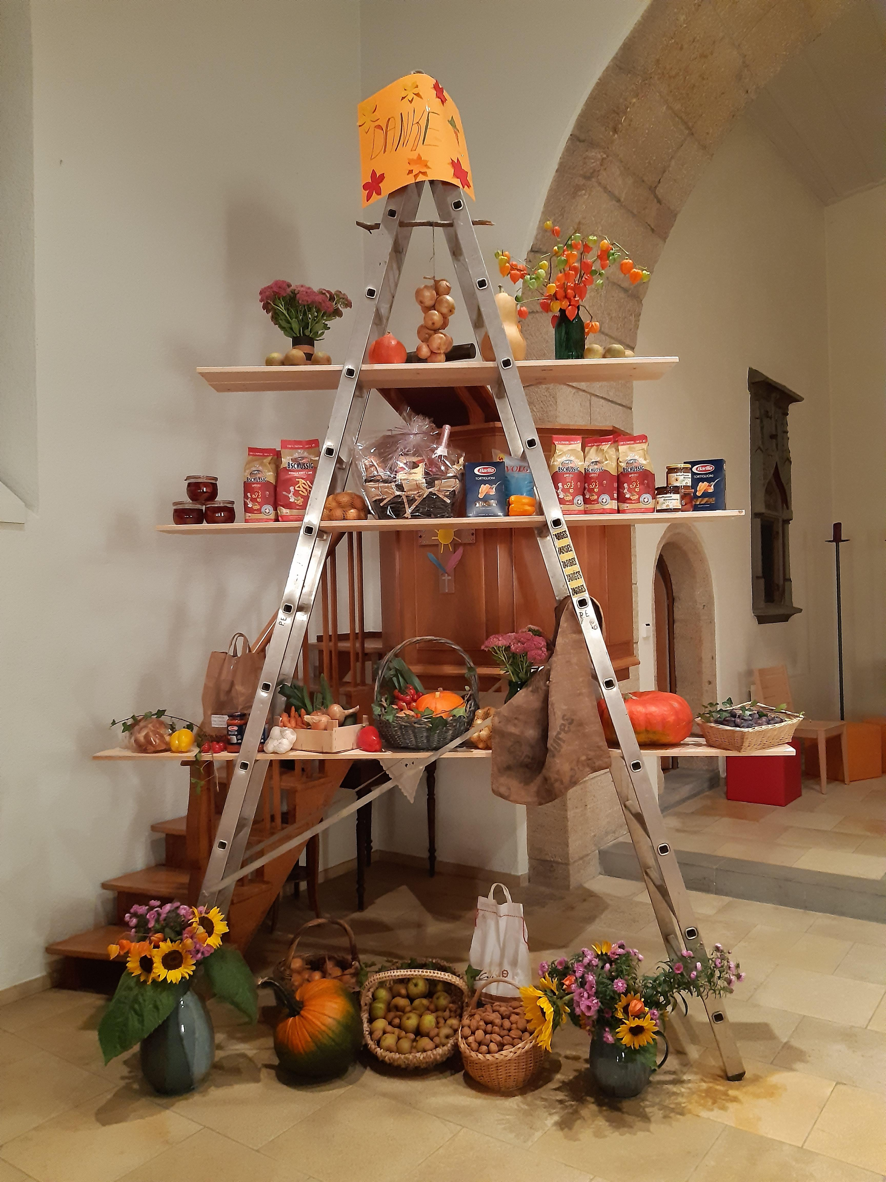Der verregnete Sommer machte sich in den Gärten bemerkbar: Blumen, Gemüse und Früchte waren spärlicher gewachsen. Umso bewundernswerter war es, was wir an Erntedankgaben erhielten!