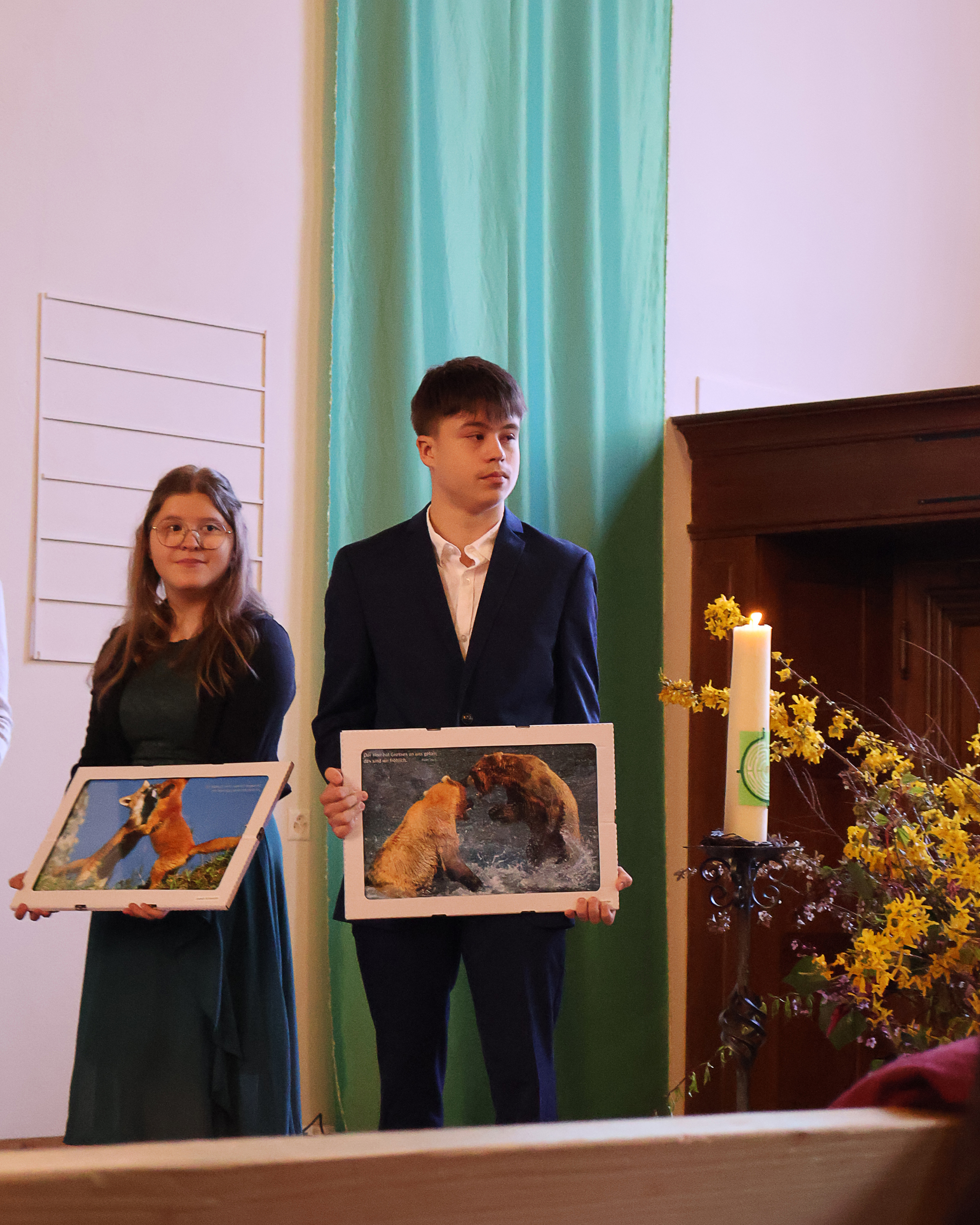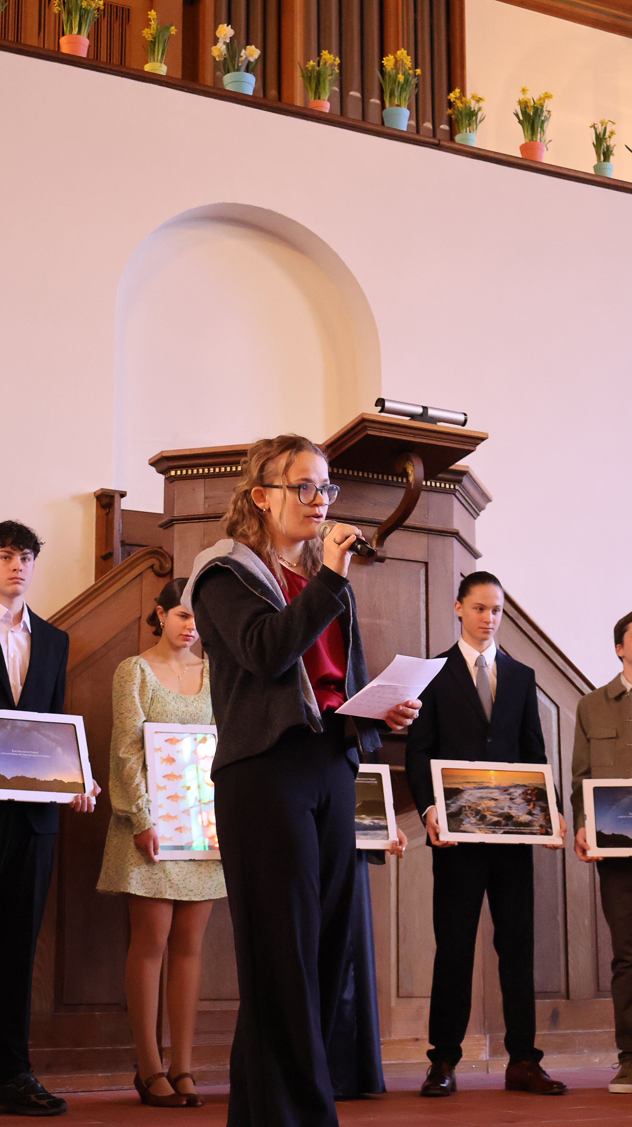 Die Konfirmandinnen und Konfirmanden aus Gächlingen und Neunkirch wurden während einem Jahr von einem Team begleitet und lernten Angebote der «Jungen Kirche Klettgau» kennen. Marianne Näf, welche die organisatorische Leitung des Teams und der Anlässe hatte, blickte auf ein bewegtes Jahr zurück und bedankte sich bei Zoé Werner als «Brückenbauerin» zu den Jugendlichen. Sie hatte bei vielen Anlässen, im Konflager und bei der Konf-Vorbereitung mitgearbeitet und die Lieder im Konfirmationsgottesdienst am Klavier begleitet.