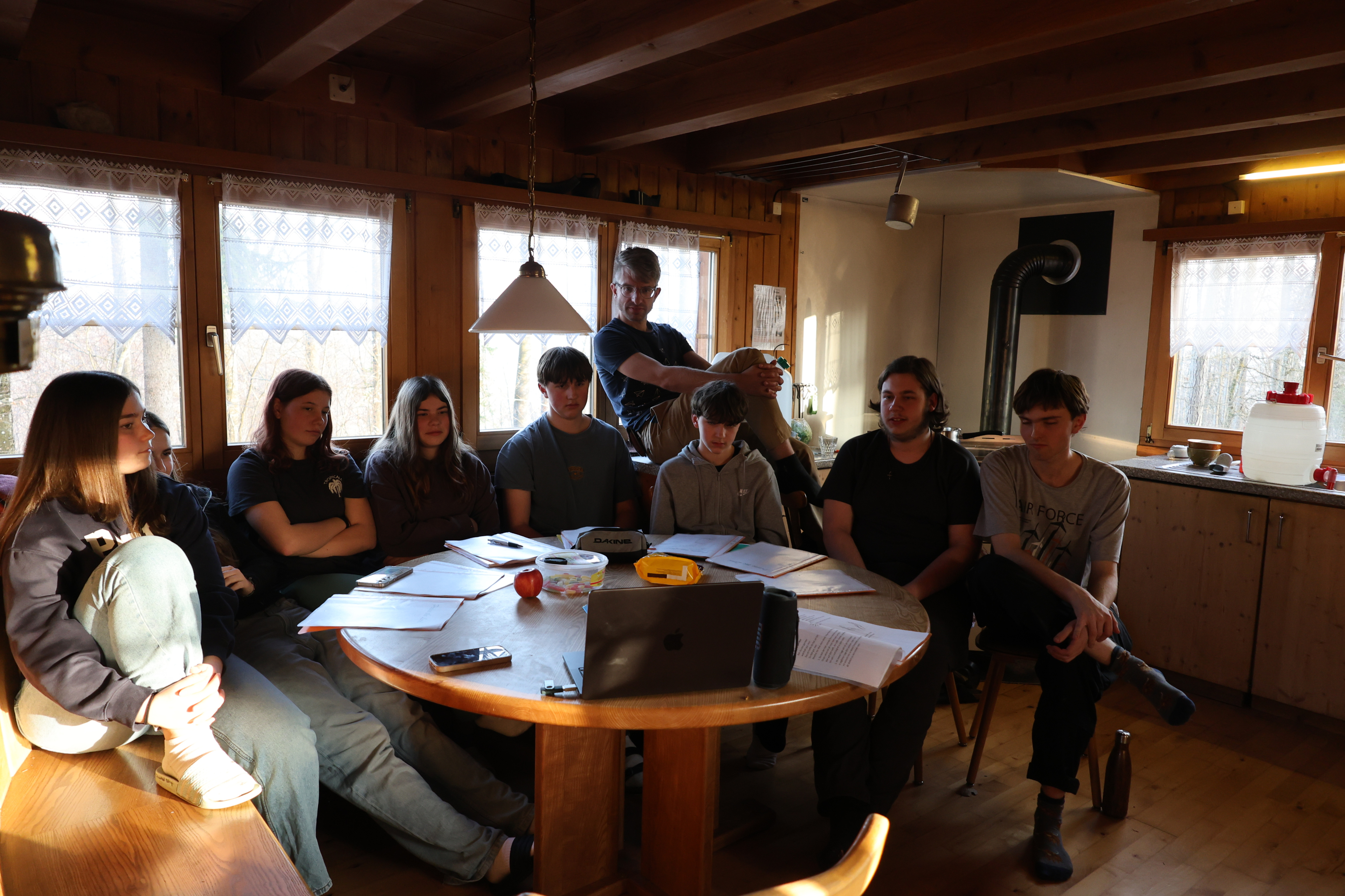 Im malerischen «Forehüüsli» auf dem Siblinger Randen wurde das diesjährige Wochenende durchgeführt. Die Jungleitenden sind Teilnehmende des Konfirmandenlagers 2025, die den Jungleiter-Kurs besuchen.